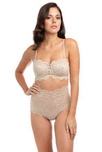 Such exquisite pair of highwaisted panties! Gold metallic lace thong made with no elastic, just using the elasticity of the lace itself. Lined in 100% cotton, it's like wearing nothing.